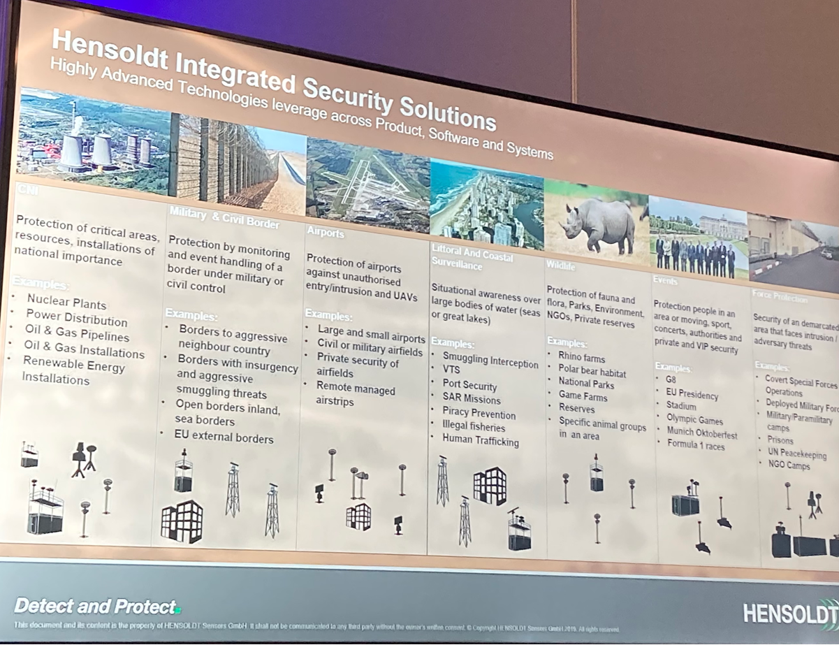 A szabályozás nemzetközi könnyítése mellett elindult a szabályok követését ellenőrző rendszerek fejlesztése is. Erről szólt Thomas Athanasiou angol nyelvű előadása, aki a drónvédelemmel foglalkozó 1,3 Mrd dolláros forgalmú és 6500 alkalmazottal rendelkező Hensoldt képviselőjeként adott elő. Több területen mutatta be a drónok elleni védelem lehetőségeit az azonosítástól az érzékelésen keresztül a drón földre kényszerítéséig. Rendszereik lehetnek fix telepítésűek, de létezik G-osztályú Mercedesre telepített változatuk is. A védelem az ipari területekre, kiemelt objektumokra, katonai létesítménykere terjed ki, de alkalmazási lehetőségeiknek szinte nincs határa.